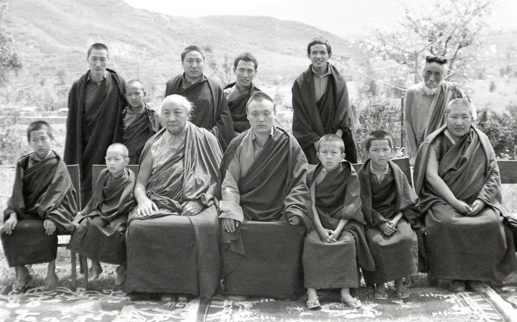 Orgyen Tobgyal Rinpoche (top row, 2nd left) with Dilgo Khyentse Rinpoche & Eighth Khamtrul Rinpoche at Tashi Jong